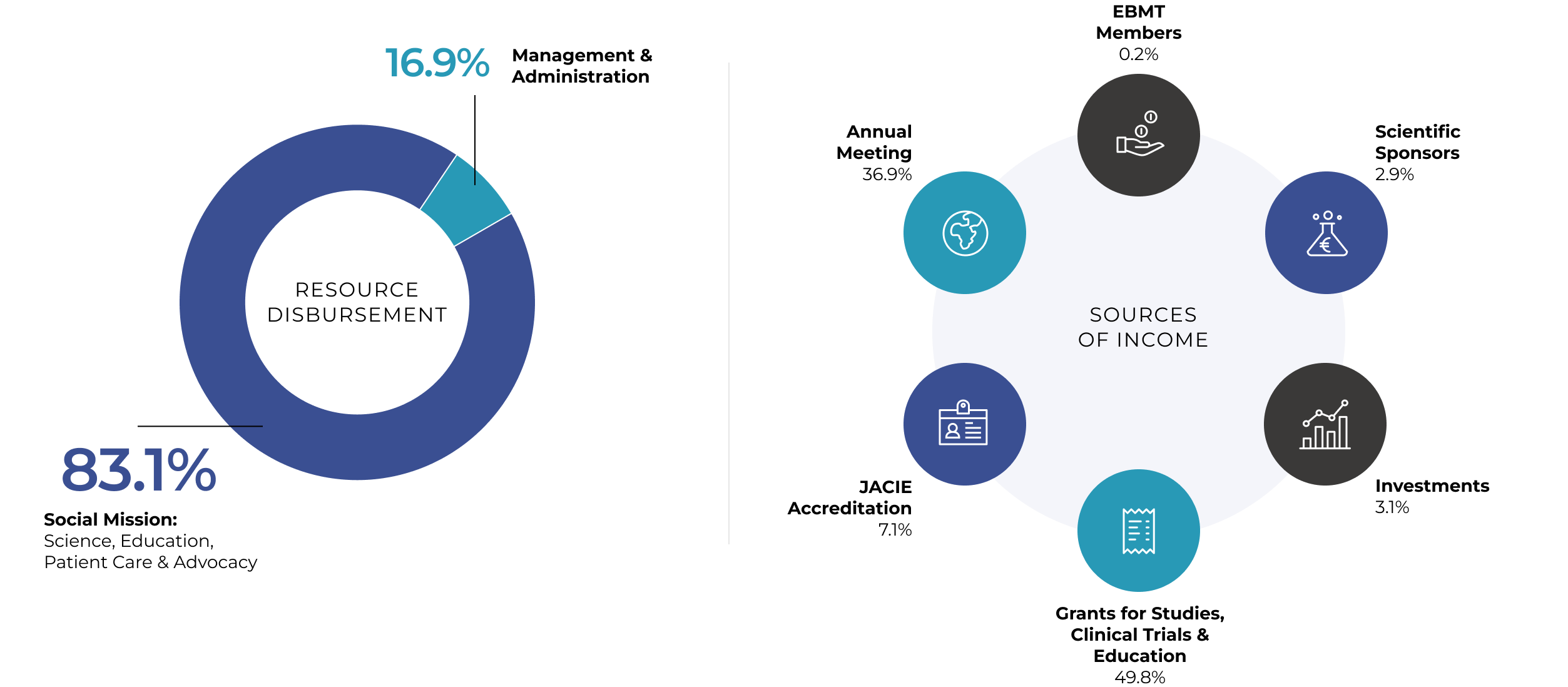 In 2025, income of EBMT decreased compared to previous years. EBMT’s major sources of income are the Annual Meeting and revenue generated through post-authorisation safety (PAS) studies and pharmaceutical industry-initiated and/or partnered projects. Other sources of income are corporate sponsorships, certification fees, grants and investment income. In particular income through studies was less than previous years and even though income through other activities increased, direct costs related to some of these activities also increased ... Read more