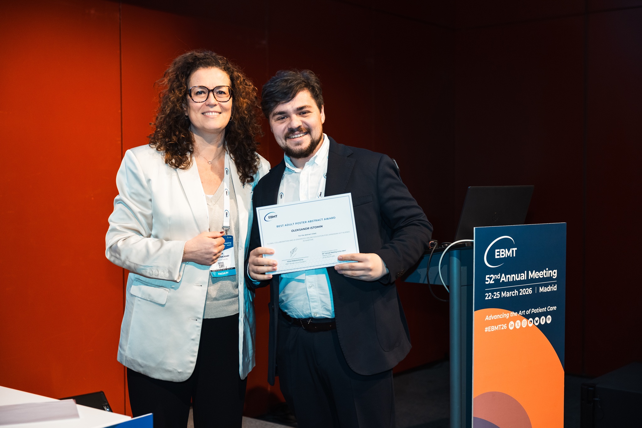 BEST ADULT POSTER PRESENTATION ABSTRACT AWARD to Oleksandr Istomin (Ukraine): GLOBAL COLLABORATION AND AI-ENHANCED ONLINE EDUCATION FOR UKRAINIAN HCT NURSES IN WARTIME