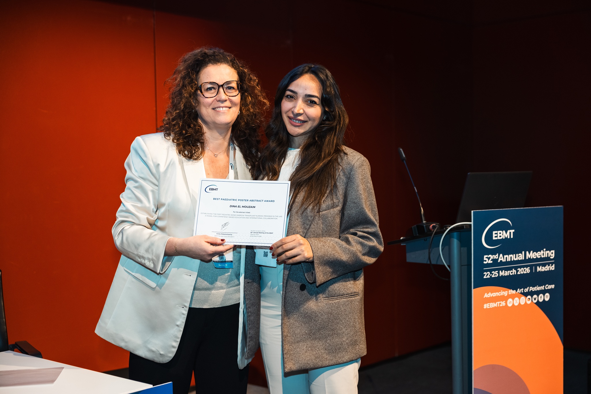 BEST PAEDIATRIC POSTER PRESENTATION ABSTRACT AWARD to Dina El Mouzain (United Arab Emirates): ESTABLISHING THE FIRST PEDIATRIC BONE MARROW TRANSPLANT NURSING PROGRAM IN THE UAE: A MODEL FOR COMPETENCY BASED EDUCATION AND INTERNATIONAL COLLABORATION