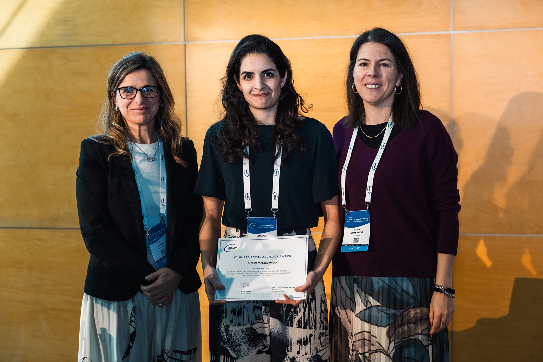 BEST PHARMACISTS' ABSTRACTS AWARD to Shaden Mahmmod (The Netherlands): HIGHER INFLIXIMAB EXPOSURE IS ASSOCIATED WITH IMPROVED RESPONSE IN PEDIATRIC STEROID-REFRACTORY GRAFT-VERSUS-HOST DISEASE: DO WE NEED THERAPEUTIC DRUG MONITORING?
