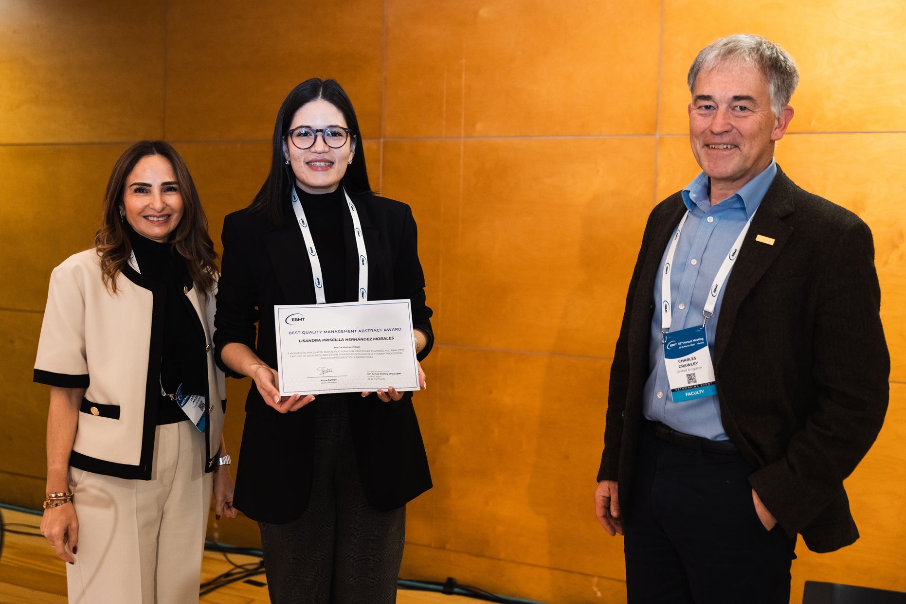 BEST QUALITY MANAGEMENT ABSTRACT AWARD to Lisandra Priscilla Hernández Morales (Spain): WORKFLOW-INTEGRATED DIGITAL PLATFORM FOR PROCEDURE PLANNING AND REAL-TIME CAPTURE OF JACIE-REQUIRED KPIS IN APHERESIS UNITS AND CELL THERAPY PROCESSING AND CRYOPRESERVATION LABORATORIES