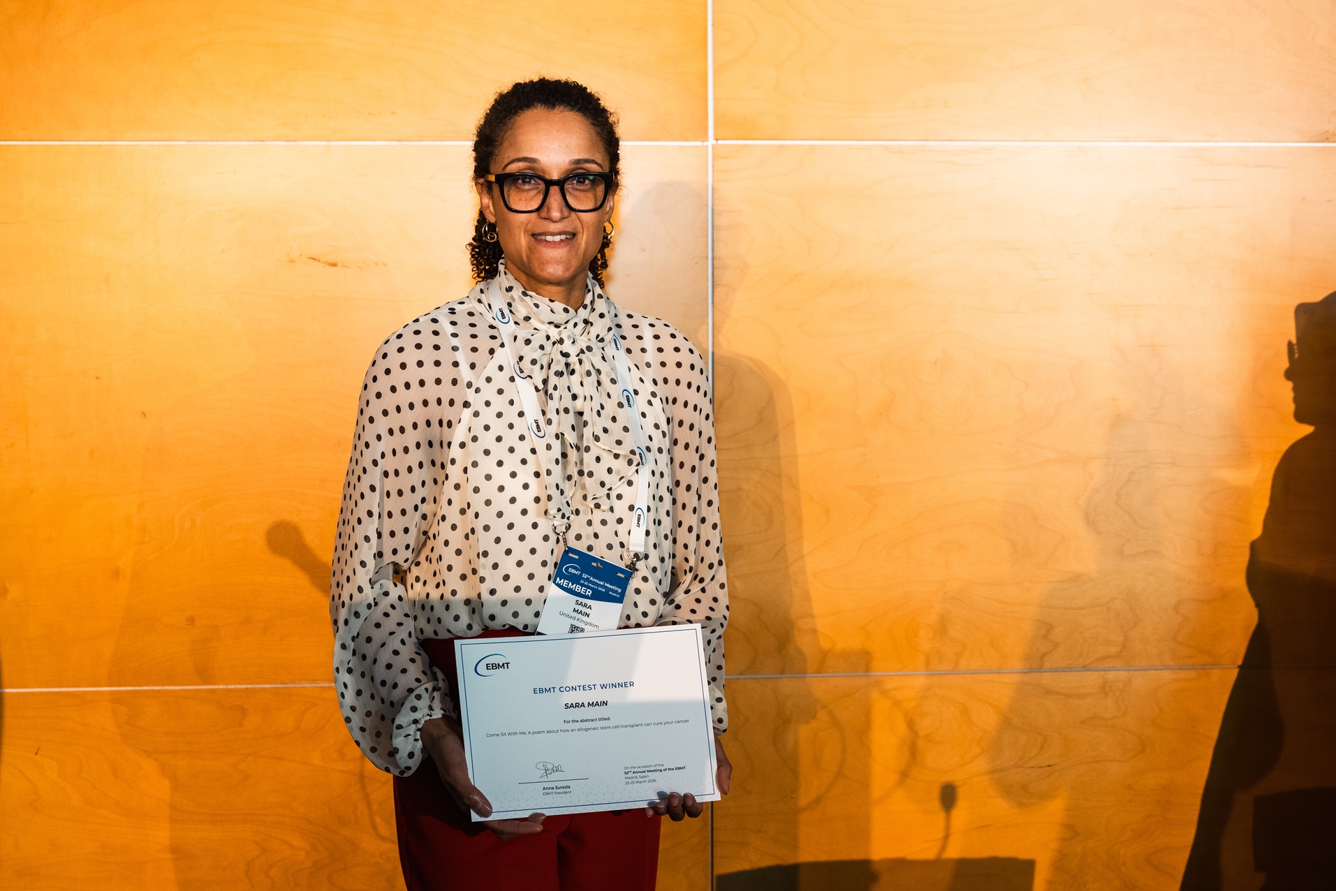 CONTEST SESSION WINNER: Sara Main (UK) for the best video essay: "Come Sit With Me. A poem about how an allogeneic stem cell transplant can cure your cancer".