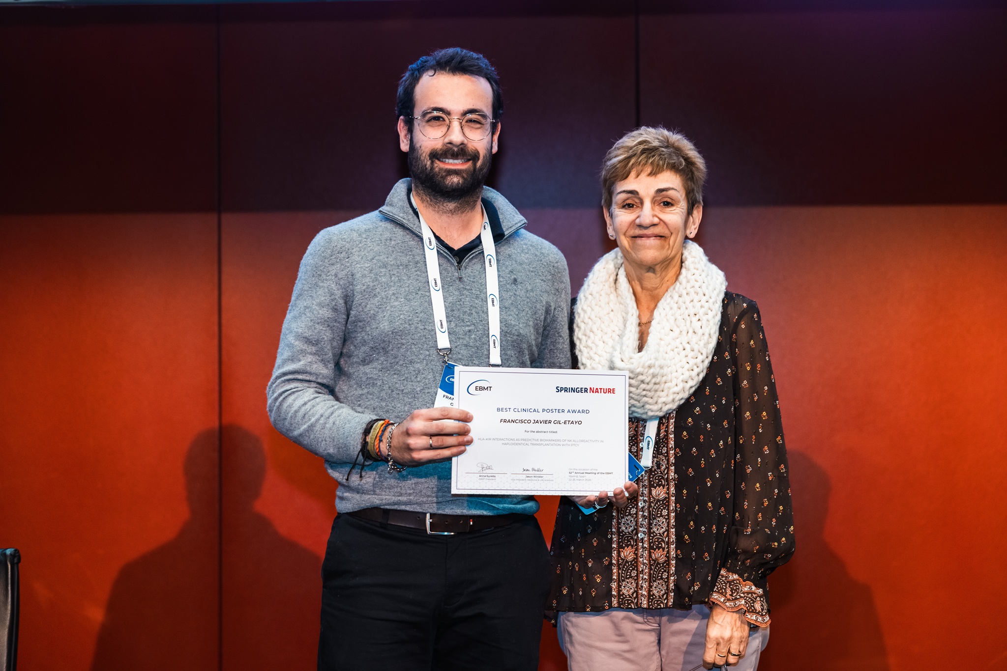 BEST CLINICAL POSTER AWARD to Francisco Javier Gil-Etayo (Spain): HLA–KIR INTERACTIONS AS PREDICTIVE BIOMARKERS OF NK ALLOREACTIVITY IN HAPLOIDENTICAL TRANSPLANTATION WITH PTCY